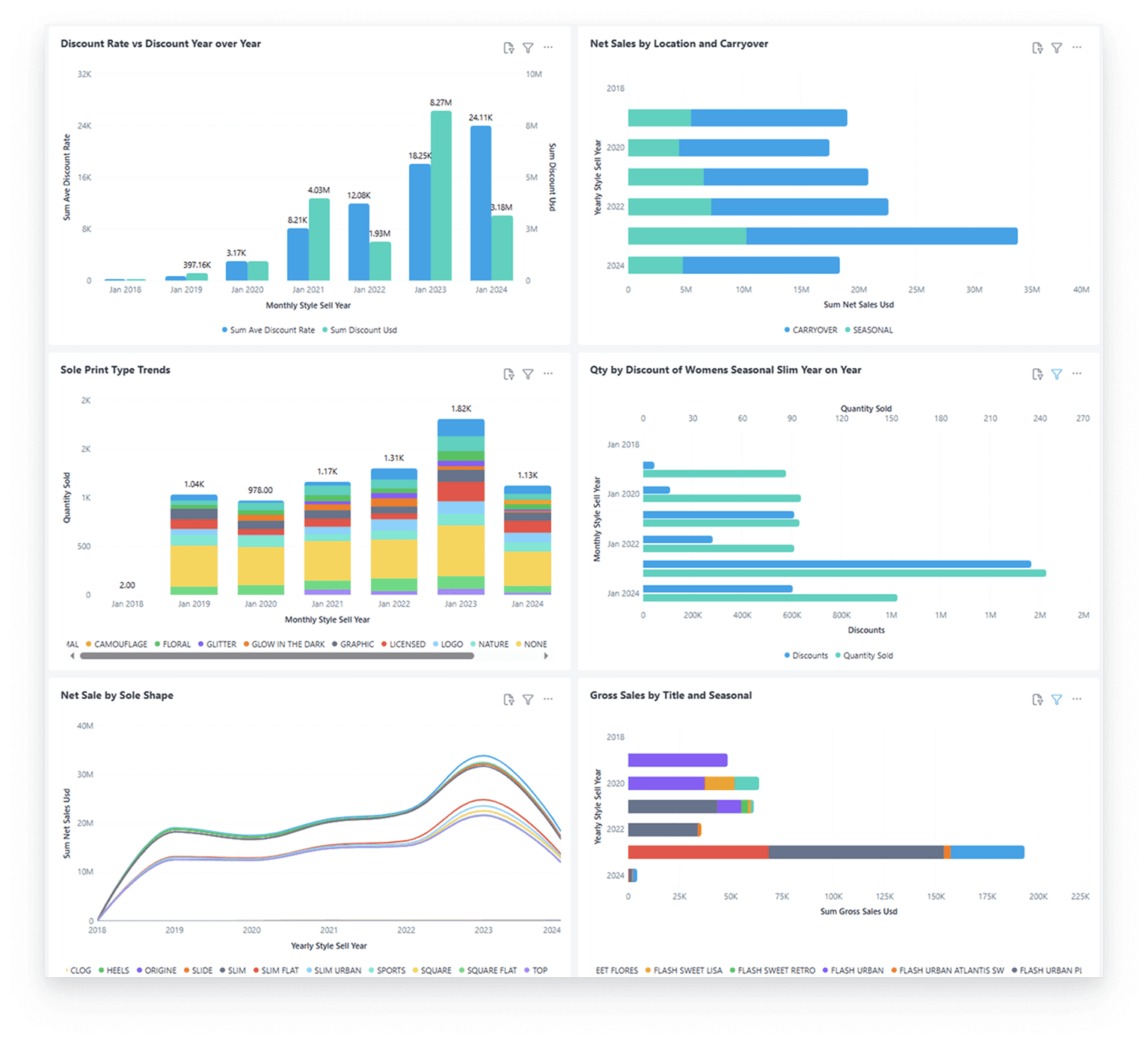 Rich chart library (KPIs, heatmaps, maps, trends)
