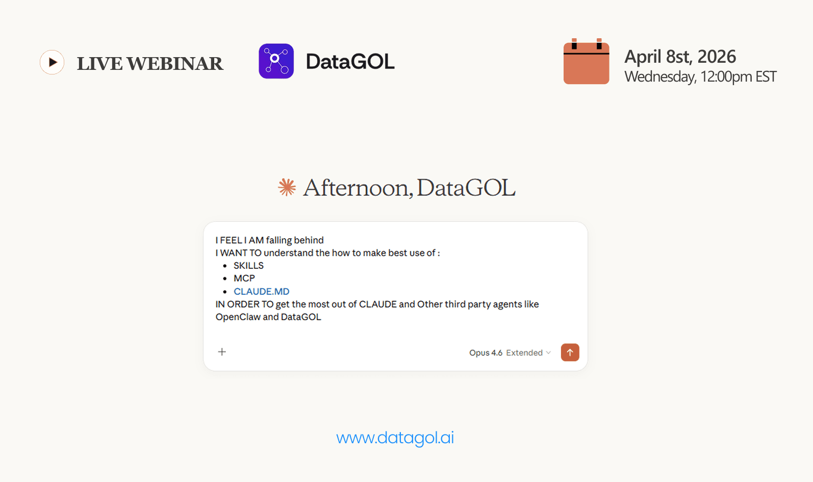 We are hosting a short session on what should be the real focus, why focusing on infrastructure misses the real bottleneck, and what actually changes when AI is designed around shared context, execution, and verification. At DataGOL, we have helped early adopter and committed organizations launch and use AI agents within their products and internal usage, bring AI pilots out of experimentation and into production environments with practical considerations around security, data, and correctness. We have seen firsthand what breaks, what slows down teams, and what it actually takes to launch AI successfully inside real operational workflows.
