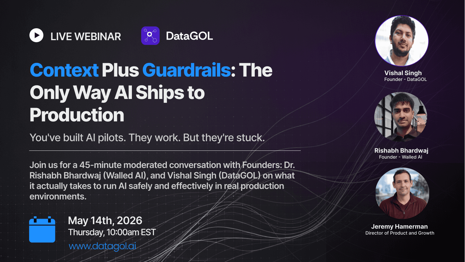 Join us for a 45-minute moderated conversation with Dr. Rishabh Bhardwaj, Founder & CEO of WalledAI, and Vishal Singh, Founder of DataGOL on what it actually takes to run AI safely and effectively in real production environments.