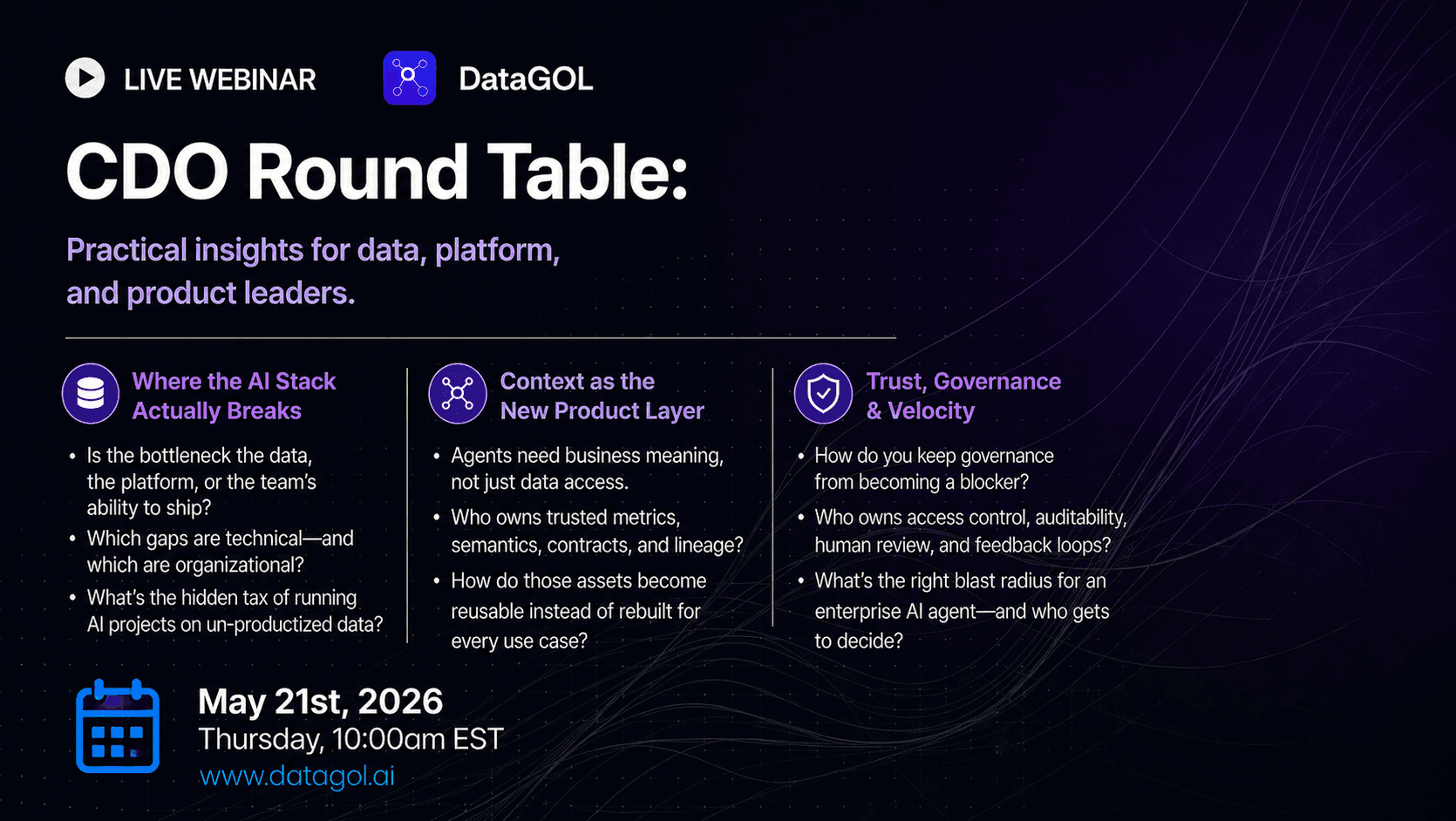 Join DataGOL founder Vishal Singh for a practical discussion designed for data product builders, CDOs, CTOs, and AI leaders who are rethinking how enterprise data should be packaged, governed, and activated for AI agents.